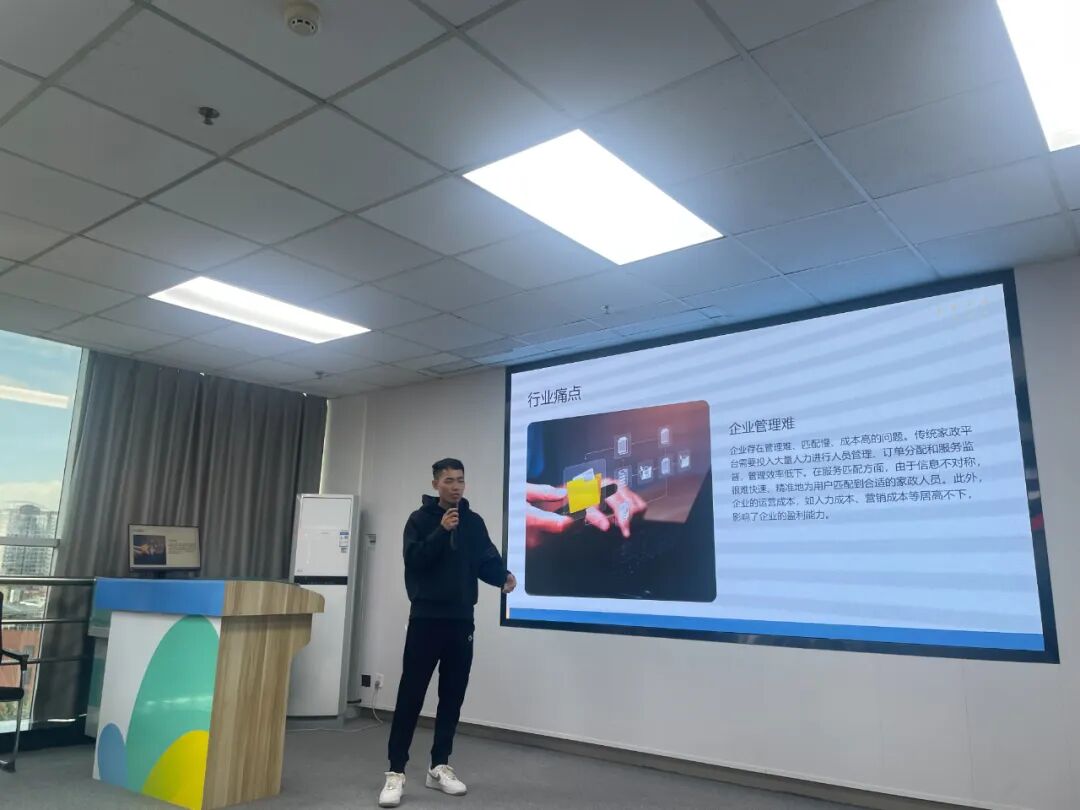 交流会上,云尚家科技小程序负责人周林江带重点来了 “传统家政企业数字化转型,开启智慧家政新体验” 的主题分享。针对传统家政行业普遍存在的行业痛点,周林江详细介绍了公司自主研发的 “云尚易家” 小程序数字化家政服务管理平台,从项目背景、核心功能、优势亮点,到技术支撑、安全保障与市场运营规划,进行了全方位解读。得到了在场家政同仁的一致认可,在当天下午,考察团队对小程序的功能和使用进行了深入的交流学习。